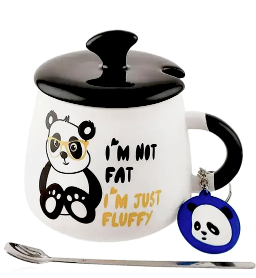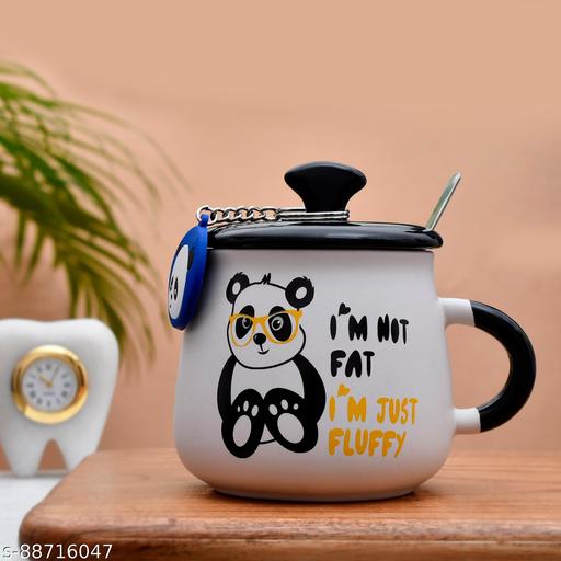 Panda Coffee Mug with Lid & Glass Spoon, Mugs for Coffee,Birthday present for everyone,diwali gift,best present for women,Ceramic Mug, 3D Panda Coffee Mug (420ml – Panda White) (Panda Mug)