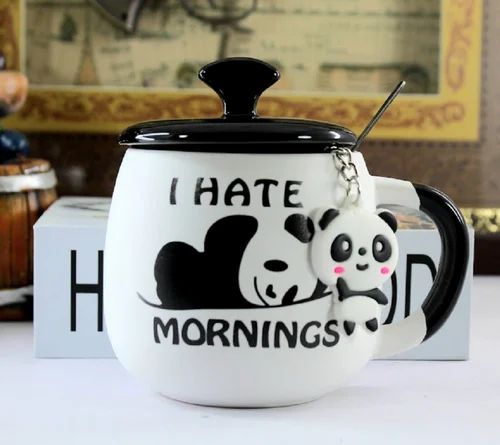 Personality Cute Panda Mug Design-- This ceramic Panda cup has a lovely pattern and exquisite body design, which is beautiful and easy to handle; Big capacity 420 ML, the cup mouth is rounded for easy drinking, the large handle is comfortable to hold.