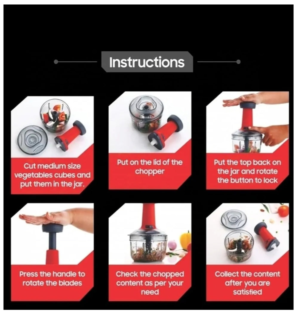 Other Details: This chopper is built with durability in mind. The blades are made of strong stainless steel for sharp and long-lasting performance. The body is constructed from unbreakable ABS plastic, ensuring it can withstand everyday use. While the exact weight isn't specified, it's listed as lightweight at 145 grams. It's important to note that this chopper is not dishwasher safe and should be hand washed for proper care.