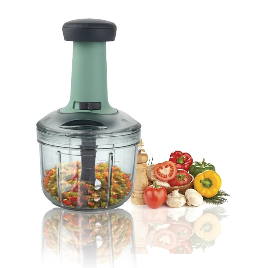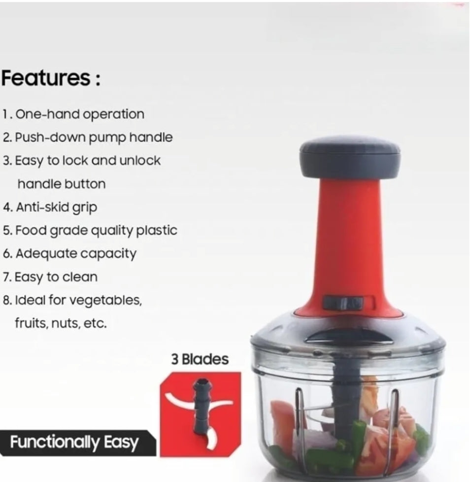 Thunder Chopper Plastic Quick Cutter Machine For Kitchen | With 3 Stainless Steel Blade | BPA Free| Multipurpose For Vegetables, Dry Fruit Etc | Handy Manual Chopper | (650Ml | Multicolor)
